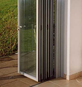 Die Glasfaltwände sind witterungsbeständig, wartungsarm und langlebig.Mit wenigen Griffen holen